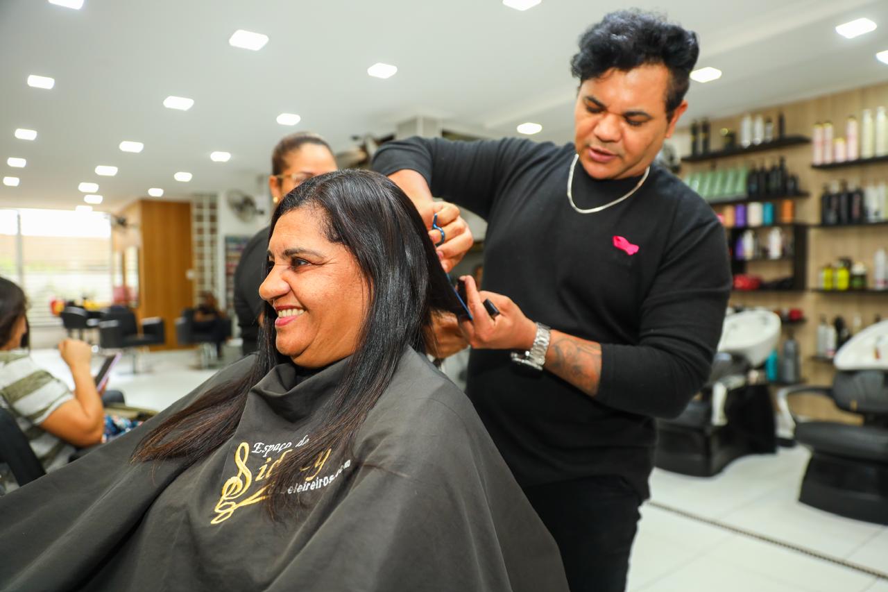 A ação, que integra a programação do Outubro Rosa, tem um único objetivo: devolver a autoestima às mulheres que perderam os cabelos durante o tratamento oncológico, como destaca o cabeleireiro Sidney.
