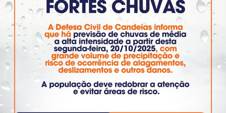 • Candeias: Defesa Civil faz alerta de chuva forte a partir de segunda (20)