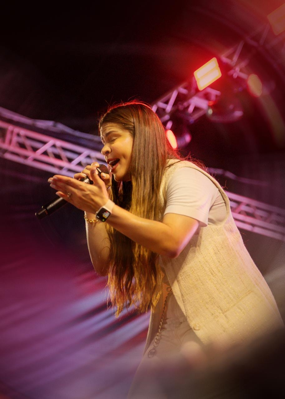 Cada louvor elevava o ambiente a um nível mais intenso de fé, preparando o público para o momento principal da programação: o show de Valesca Mayssa, que transformou o espaço em um altar de comunhão. A cantora, que se apresentou pela primeira vez no município, envolveu a multidão que, de corações “quebrantados” entoaram com a artista canções como “Dia Após Dia”, “Eu Sou Teu Pai”, “Usa-Me”, entre outras.