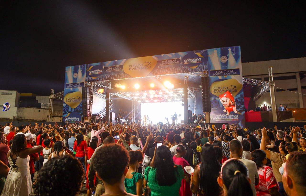 A multidão de Candeias e Região que lotou a arena de festa viveu uma verdadeira experiência espiritual através das canções de Valesca Mayssa, Nara Costa, Sempre Louve, Ministério Kairós e Missão Ágape.