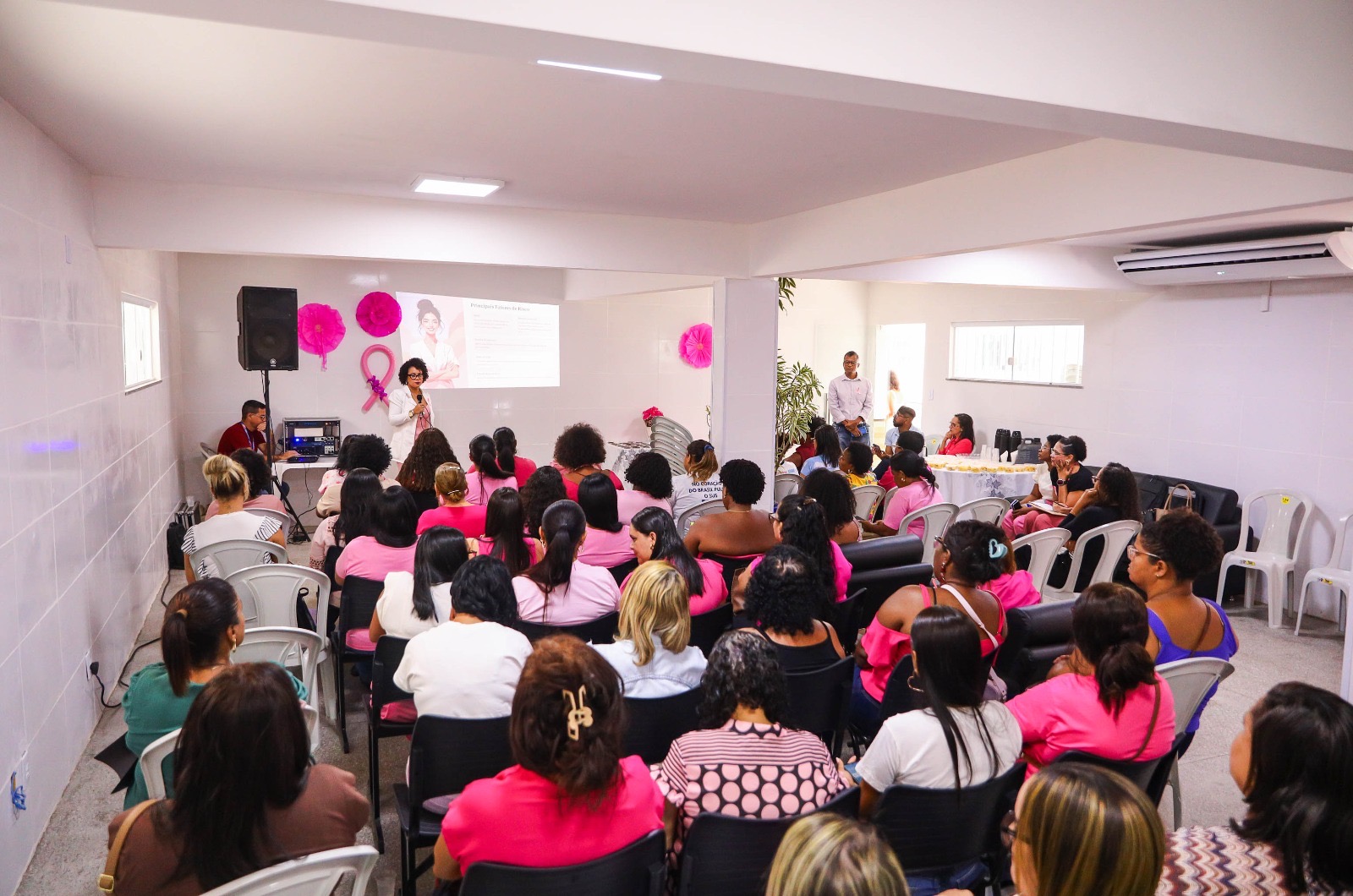 Advogadas, enfermeiras, assistentes sociais, secretárias, entre outras profissionais que atuam nos setores da administração pública, participaram na manhã desta quarta-feira (1), de uma palestra do projeto “Elas em Movimento”, que marcou o início da programação do Outubro Rosa.