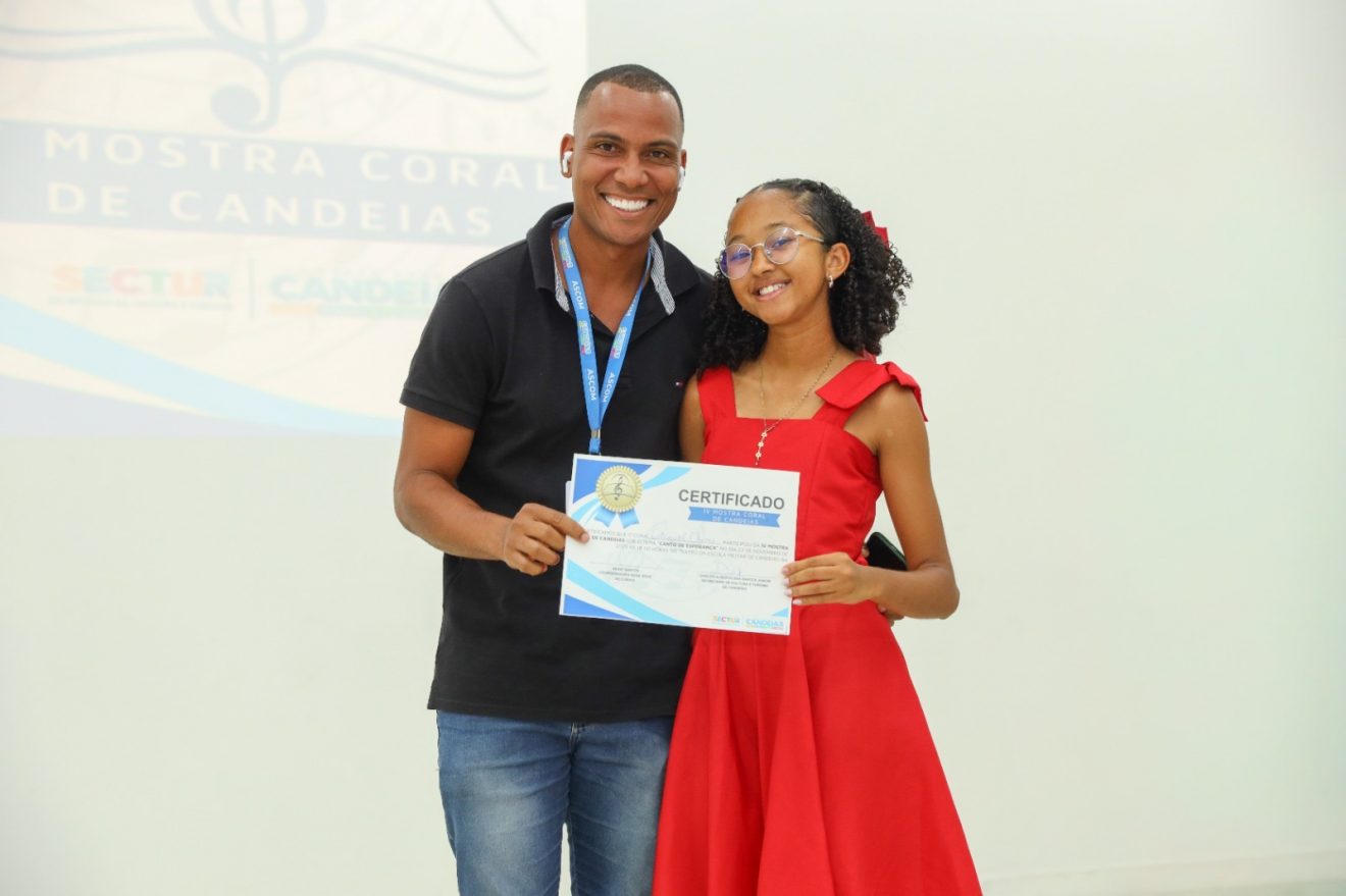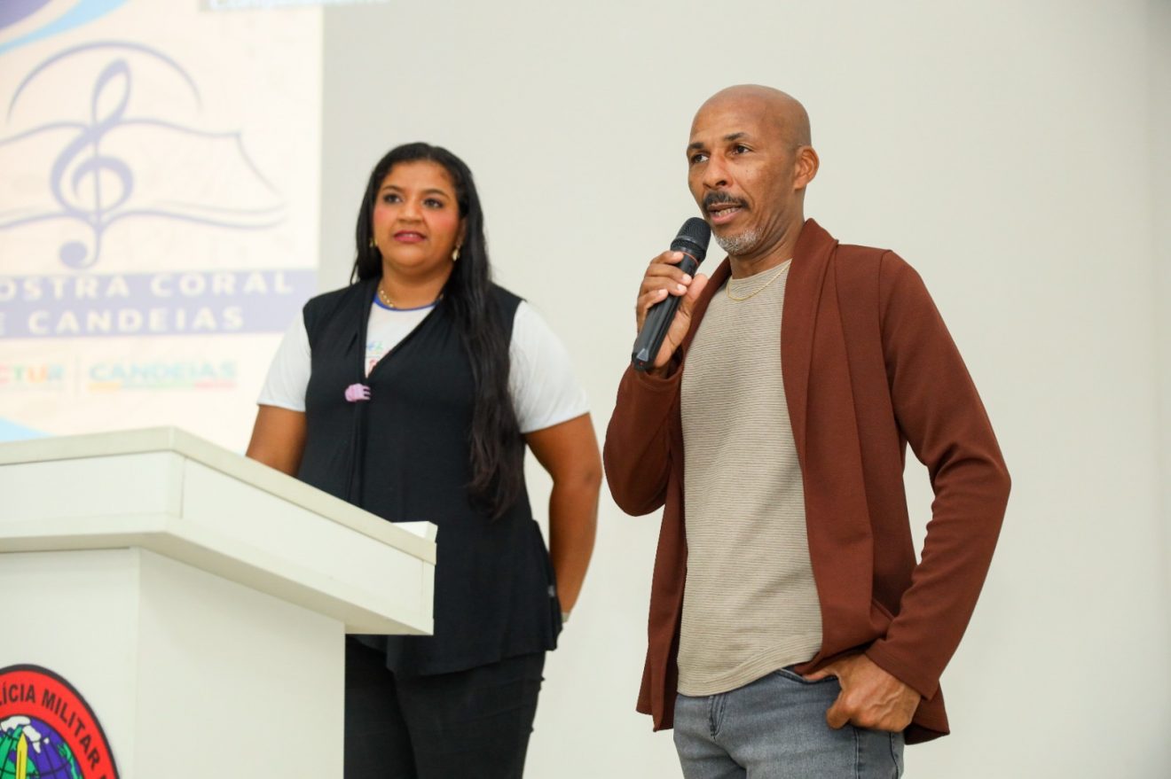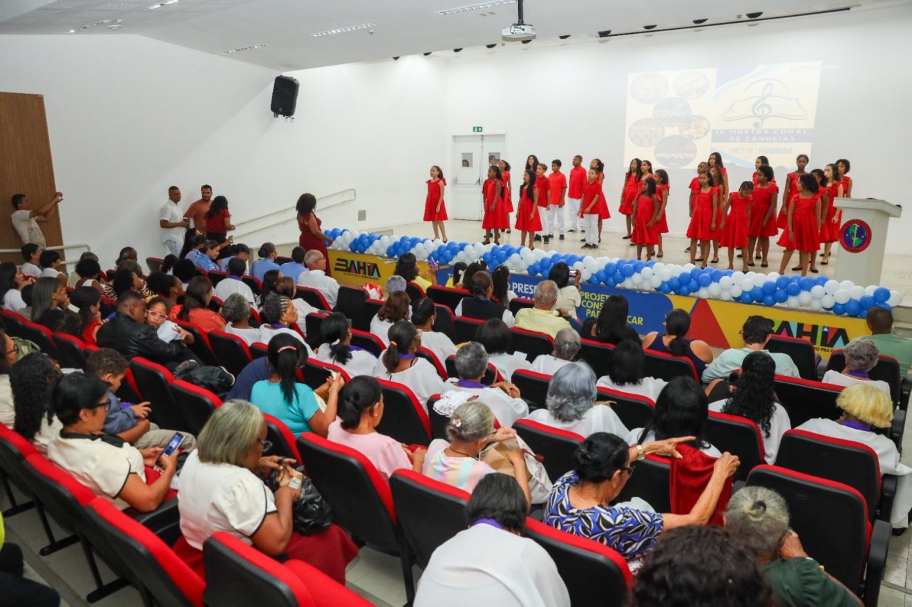 Sob a regência da professora Neide, o primeiro Coral a subir no palco foi o Municipal de Candeias, entoando canções clássicas da Música Popular Brasileira (MPB), a exemplo de “Ainda bem” (Marisa Monte) e “Primeiros erros” (Capital Inicial).