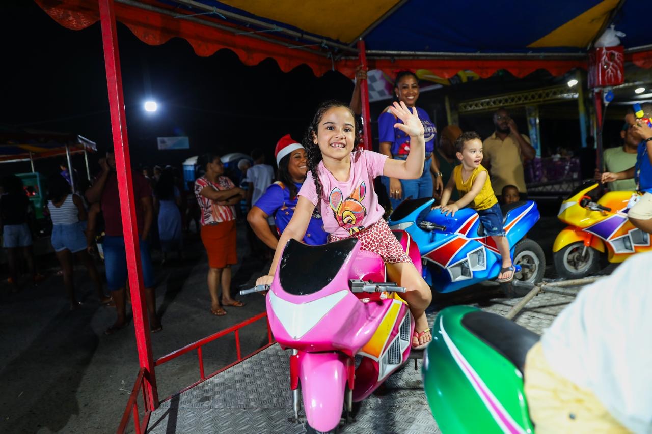 Além da decoração natalina que transforma a Praça Dr Gualberto, a Prefeitura de Candeias inovou ao disponibilizar gratuitamente brinquedos eletrônicos para a população. Entre as atrações estão autopista, moto giratória e trenzinho, todos em funcionamento ao lado da Magazine Luiza, com acesso livre ao público.