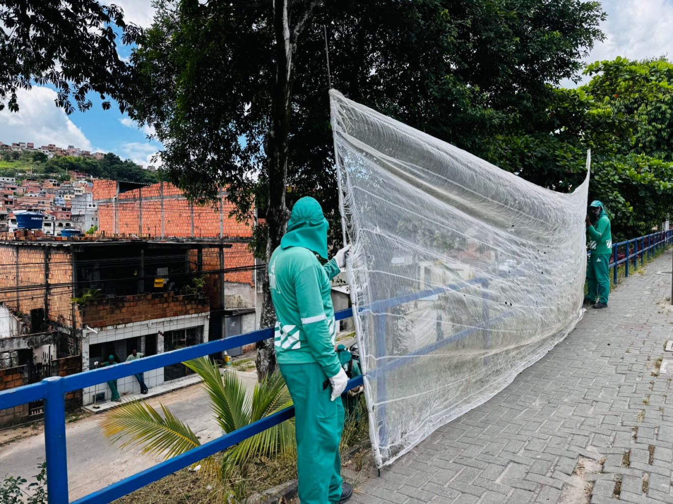 Na oportunidade, as equipes da SEMAN foram divididas para pontos diferentes de atuação. Uma equipe realizou serviços de roçagem às margens da BA 522, na Nova Candeias; a segunda equipe se concentrou na recuperação da calçada, no bairro do Triângulo, e outra no serviço de limpeza e pintura da escadaria que liga a Rua dos Missionários com a ladeira do Cruzeiro.