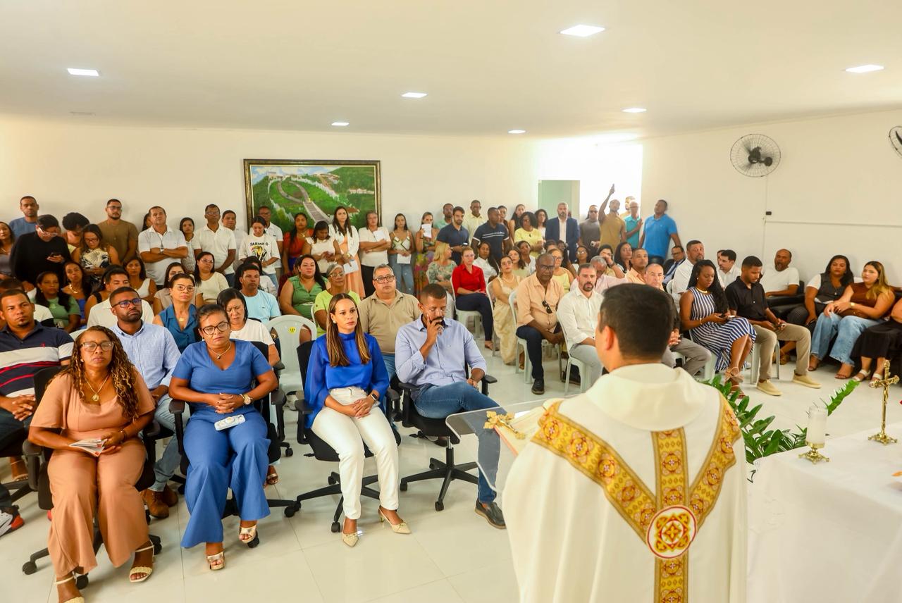 O prefeito de Candeias, Eriton Ramos convidou os demais servidores do município para iniciarem o primeiro dia útil de trabalho com um momento especial de oração, por meio da santa missa.